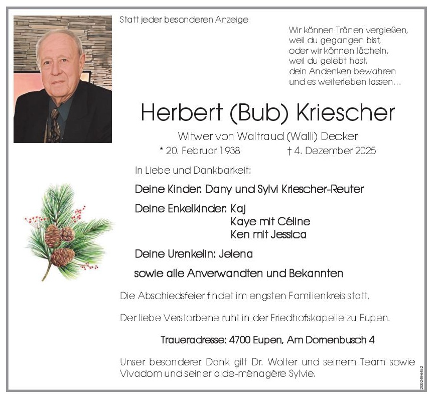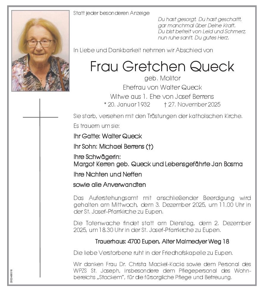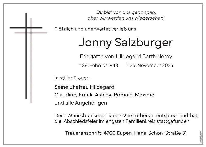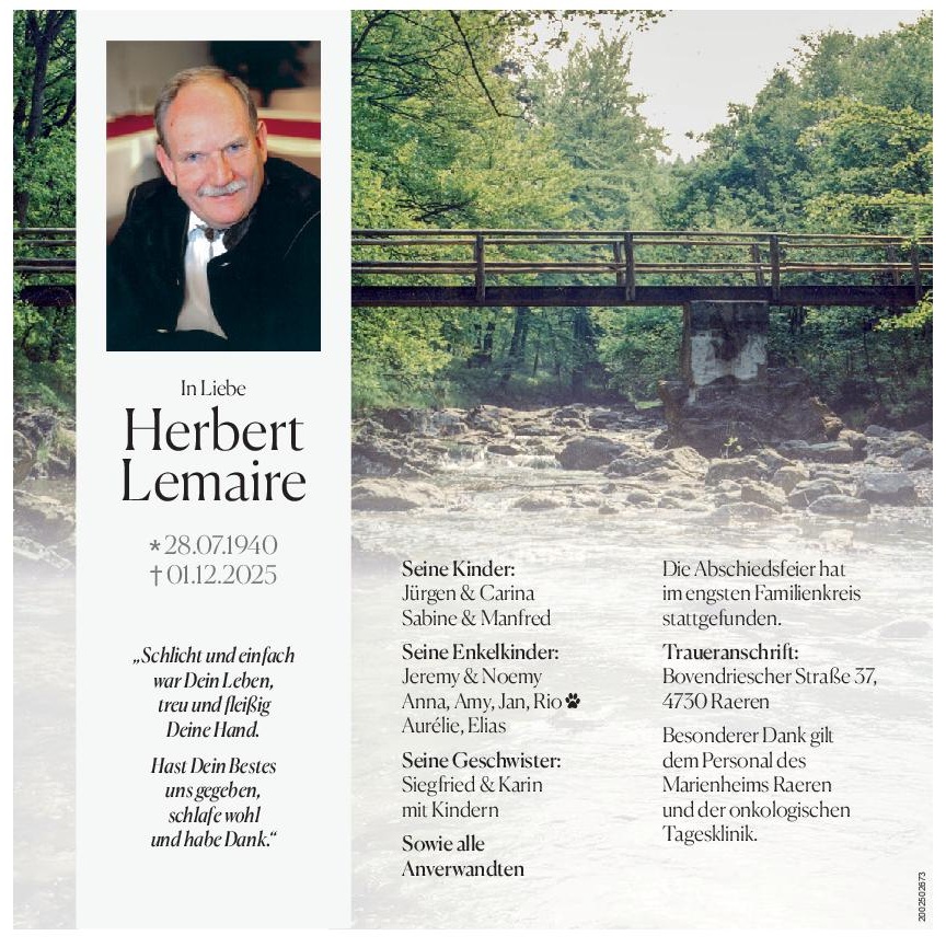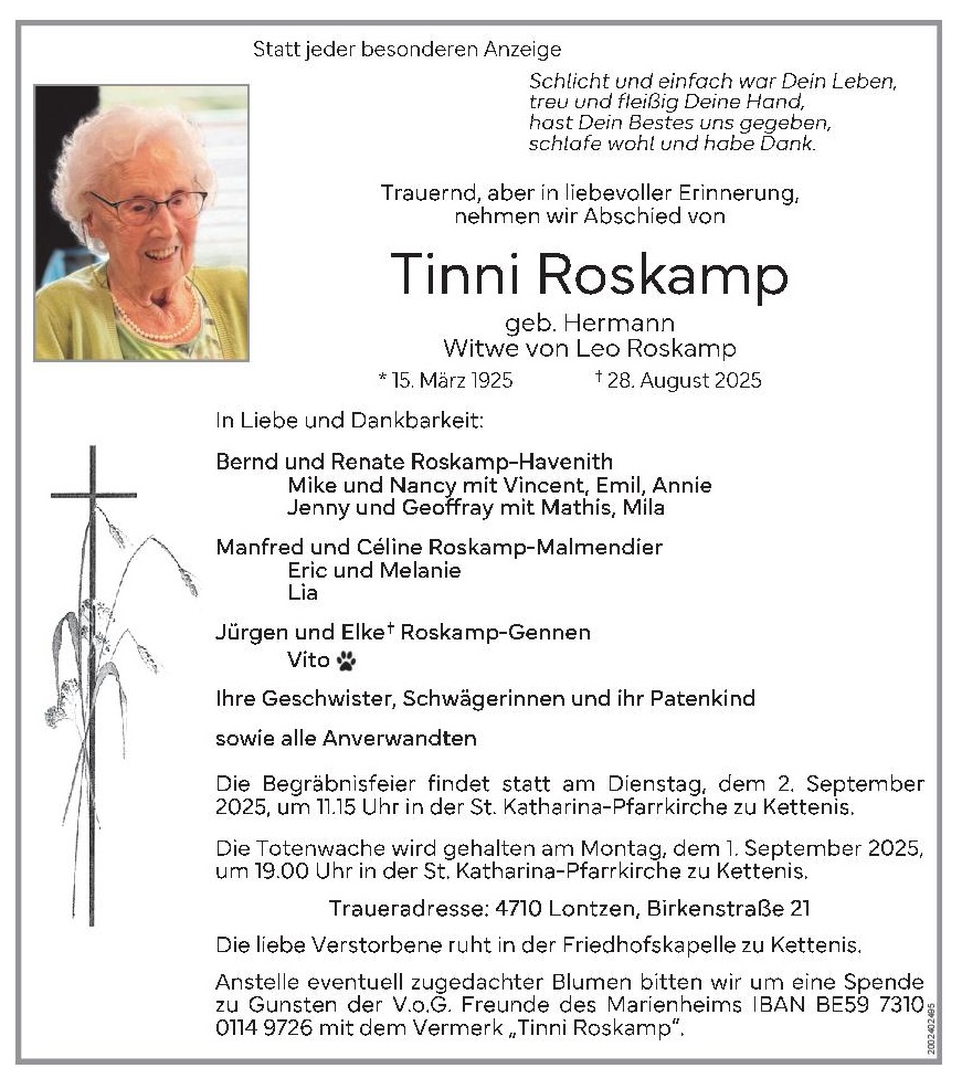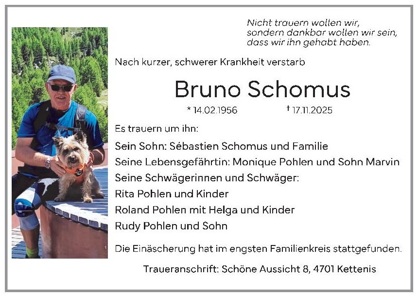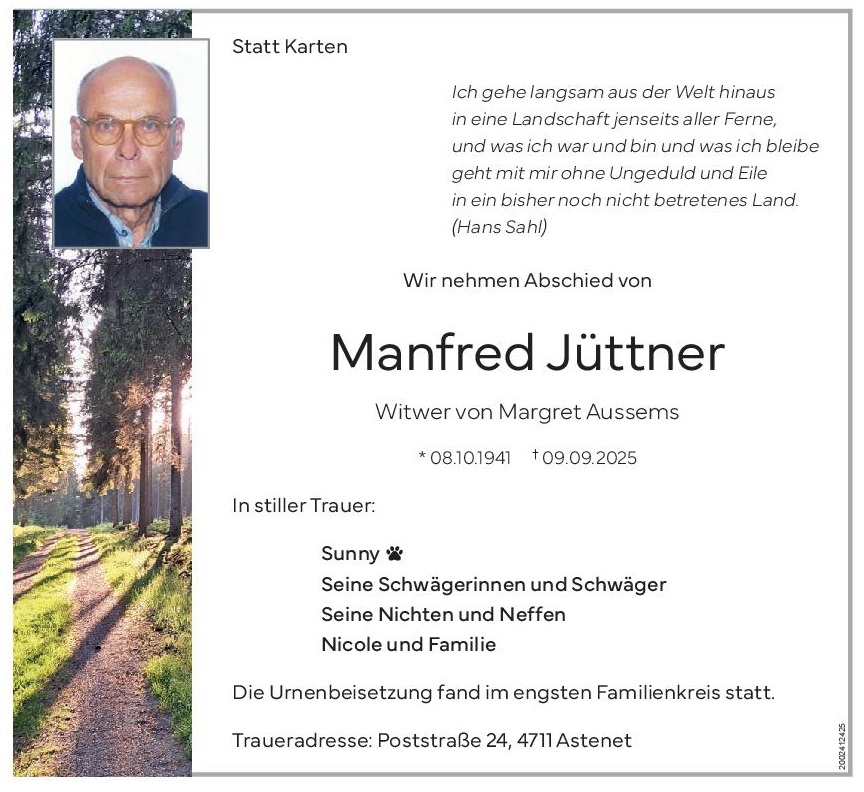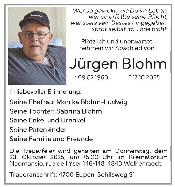 Hier finden Sie die aktuellen Traueranzeigen aus unseren Gemeinden. Klicken Sie zur Vergrößerung auf die Anzeige.