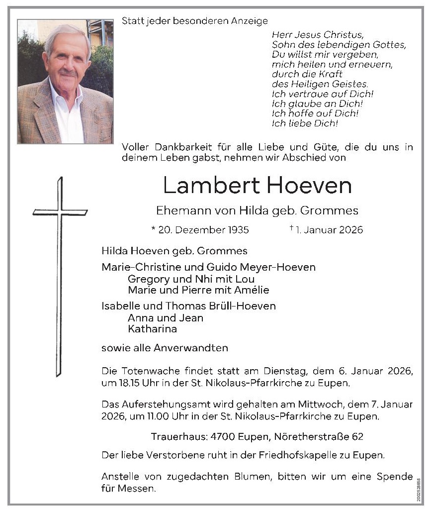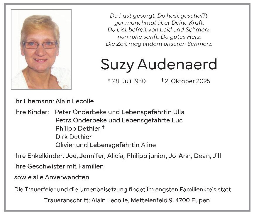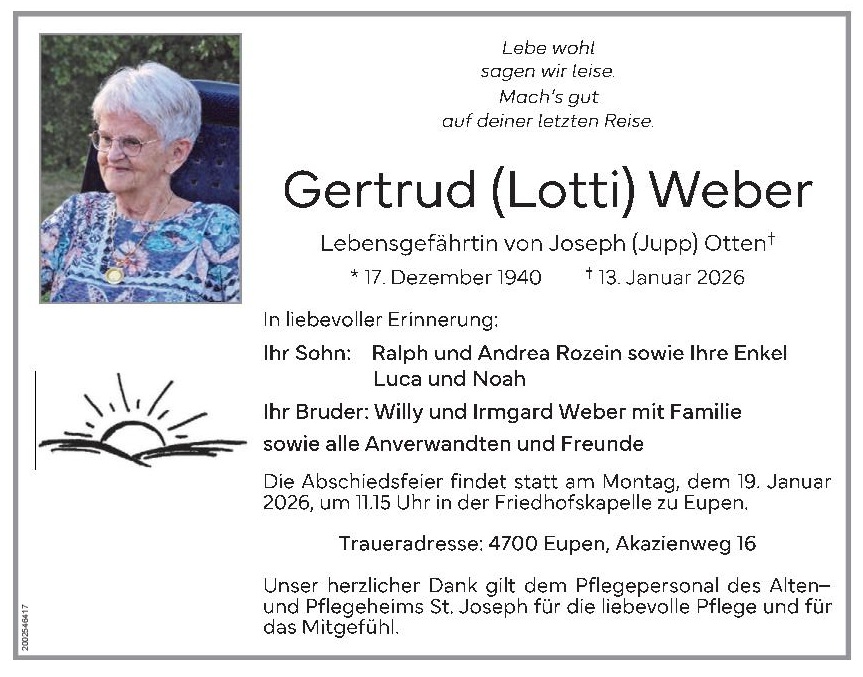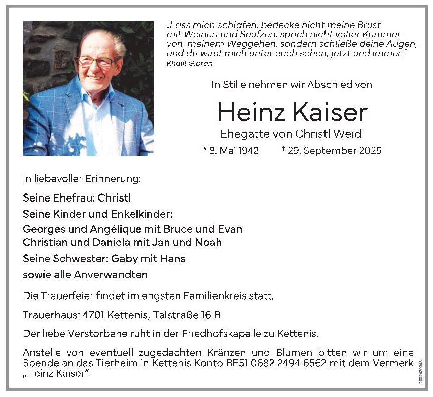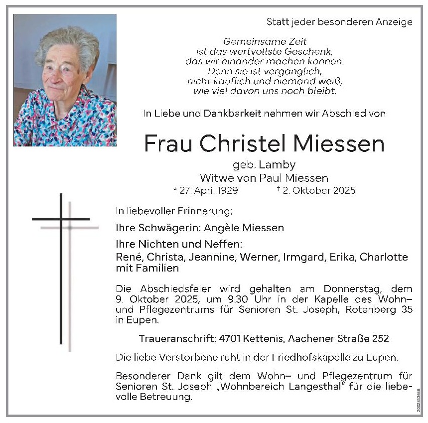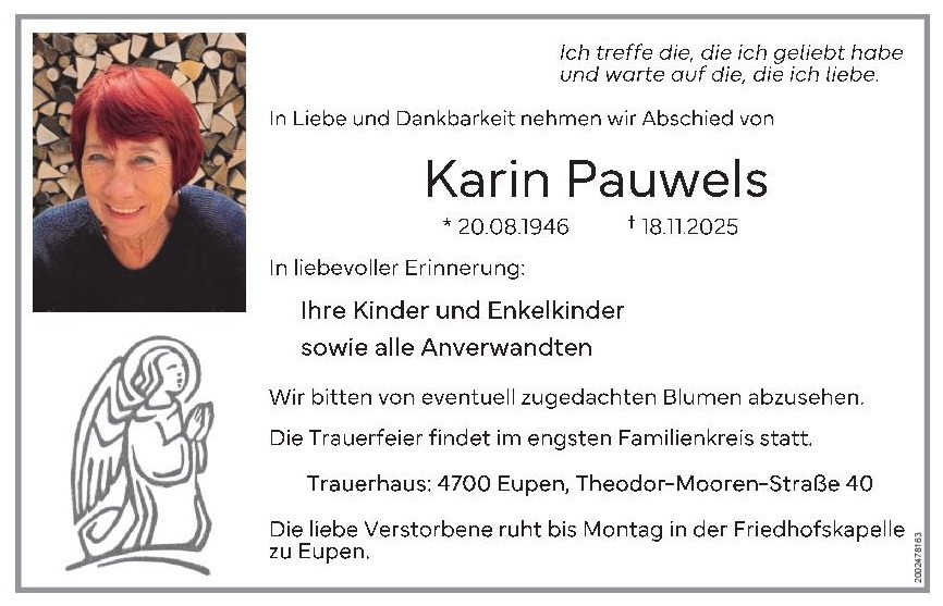 Hier finden Sie die aktuellen Traueranzeigen aus unseren Gemeinden. Klicken Sie zur Vergrößerung auf die Anzeige.